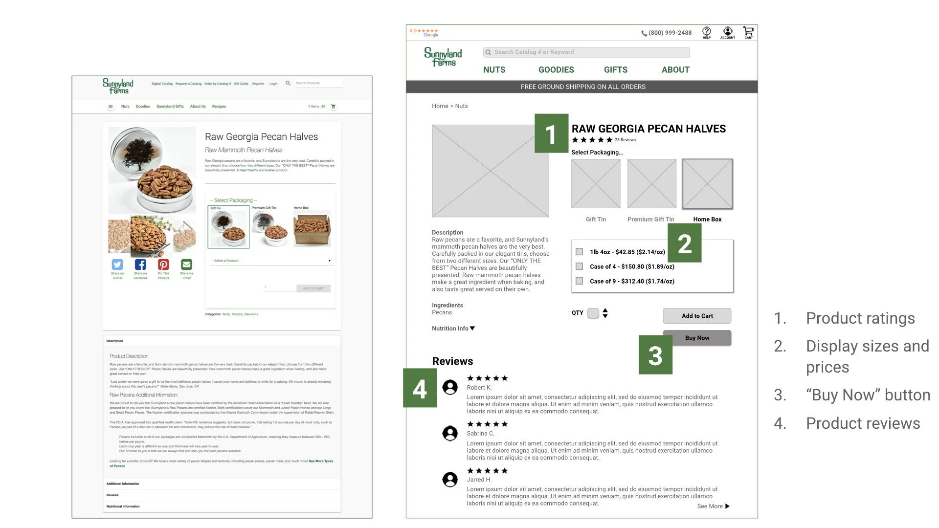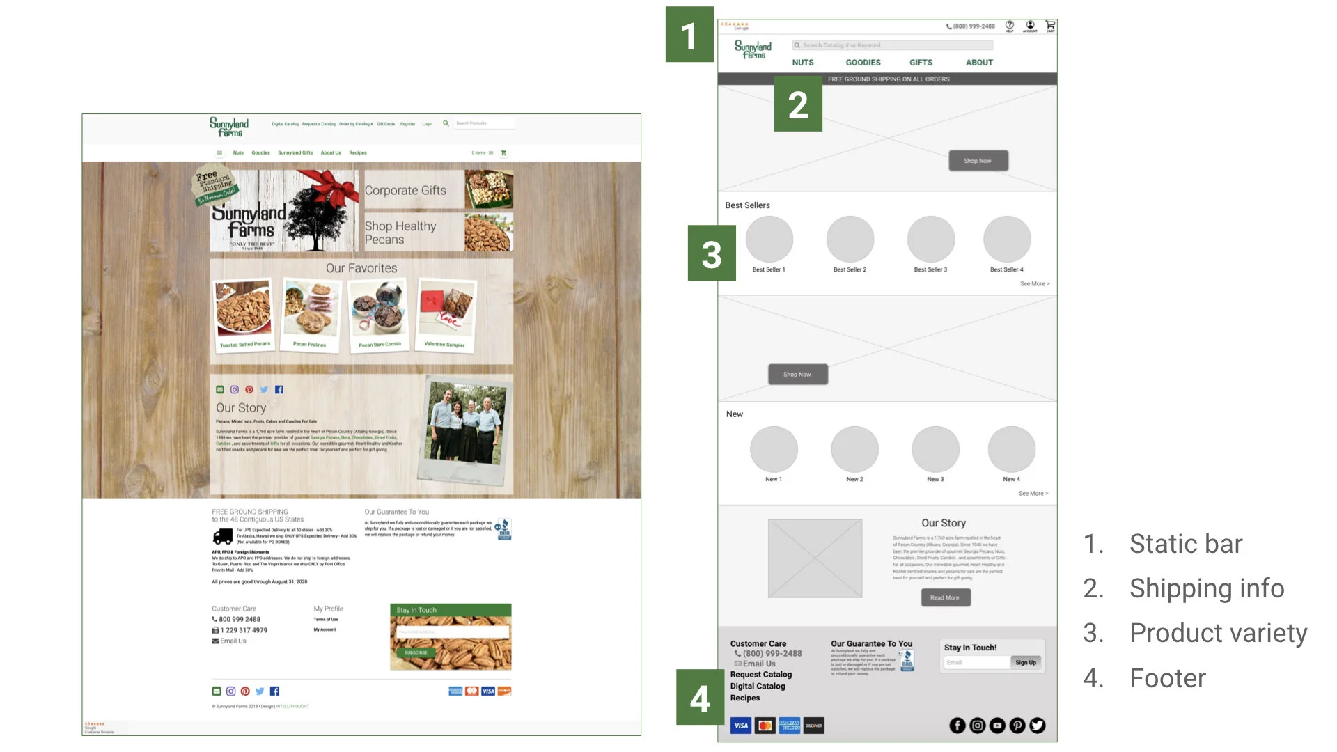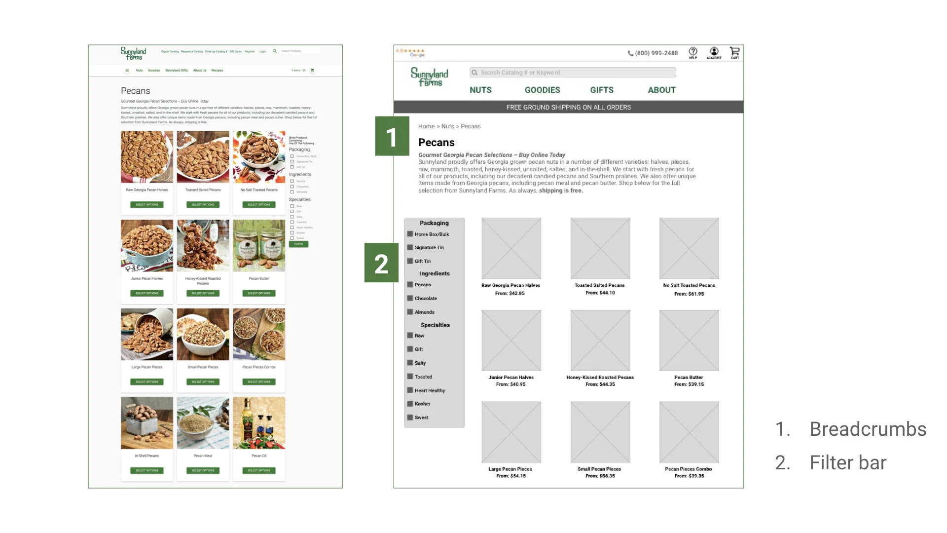 Sunnyland Farms, a 71 year old pecan company, has historically been catalog-based. As the business evolved, they have made an effort to transition their users into the modern world. I worked with a team to bring the conversational and curiosity driven nature of catalog browsing to the Sunnyland Farms website.